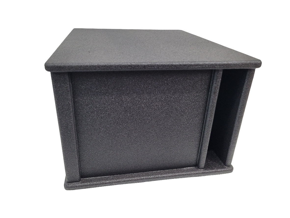 Single 12” ported box with bedliner coating.